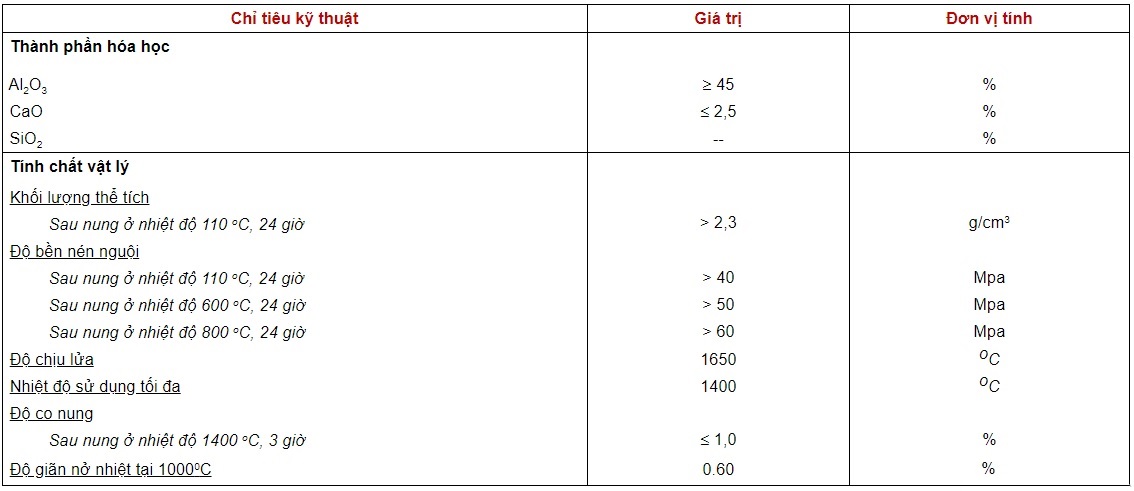 - Hỗn hợp bột khô trộn sẵn bao gồm: các nguyên liệu chịu lửa, phụ gia và xi măng chịu lửa
