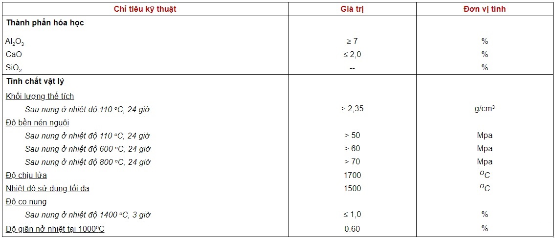 - Hỗn hợp bột khô trộn sẵn bao gồm: các nguyên liệu chịu lửa, phụ gia và xi măng chịu lửa